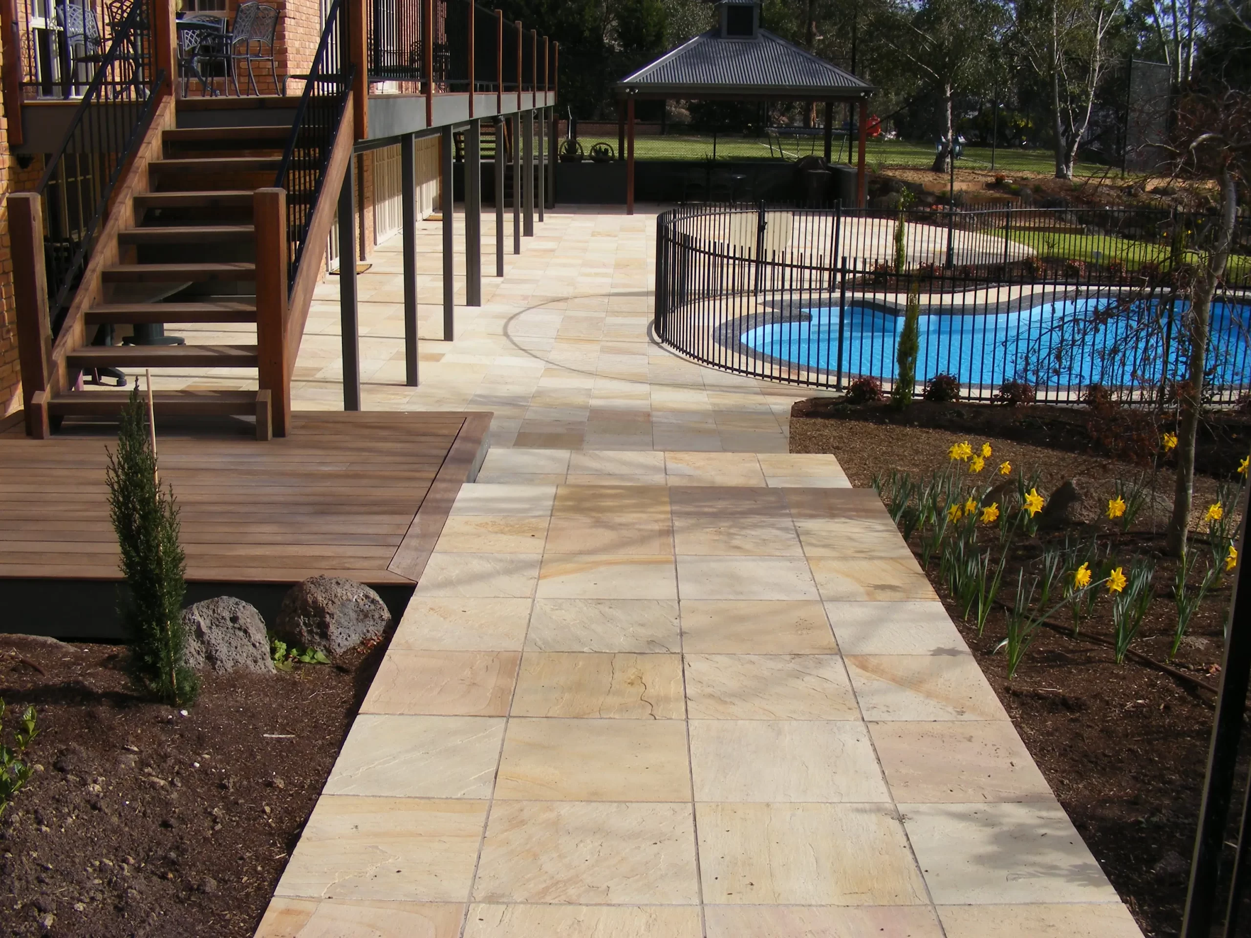 Most landscape designs will incorporate some variety of hardscapes – possible paved pathways and entertainment areas, concrete or exposed concrete driveways, pebbled areas for fire pits, rock work throughout the garden for seating, water features, retaining walls separating areas of the garden, screens for privacy and decoration and decks. The use of hardscapes enables multiple textures to be brought into the landscape such as timber, stone, concrete, metal and rock and pebbles.